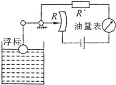 圖為汽車油量表裝置示意圖,它能自動測定油箱內(nèi)油面的高度.其中R是滑動變阻器,油量表是一只電流表.下面關于其工作原理的說法正確的是( 。