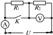 如圖所示,已知R1=R2,保持電壓U不變,當(dāng)電鍵K閉合后( 。