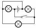 如圖所示的四個(gè)電路,閉合開(kāi)關(guān)后,三盞燈之間不是并聯(lián)的是( 。
