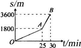 程平從家到學(xué)校,其中一半路程步行,另一半路程騎自行車(chē).路程與時(shí)間圖象如圖所示.則: