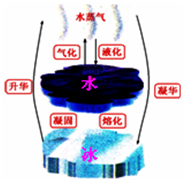 水循環(huán)過(guò)程中伴隨著吸熱、放熱和物態(tài)的變化.仿照水和水蒸氣間物態(tài)變化的箭頭,如圖所示,標(biāo)注水和冰之間物態(tài)變化的箭頭.