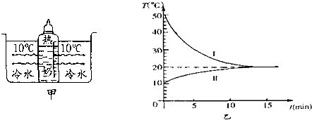 如圖甲所示是用水來冷卻熱牛奶的示意圖,圖乙中所示是記錄牛奶和水溫隨時間變化的圖象.圖中表示熱牛奶的溫度隨時間變化的曲線應(yīng)是