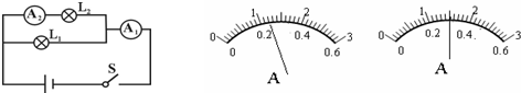 如圖所示的電路,當(dāng)電路閉合后,電流表A1的示數(shù)如圖所示,A2的示數(shù)如圖所示.