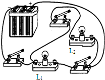 (1)開關(guān)S1只控制電燈L1;開關(guān)S2只控制電燈L2;共用一個(gè)電池組.