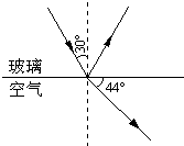 如圖所示是光從玻璃斜射入空氣中的光路圖,由圖可知,入射角為