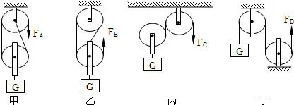 如圖所示的裝置處于靜止,物重都是G,不計(jì)滑輪和繩重及摩擦,使物體勻速上升,拉力F最小的是( 。
