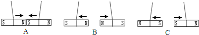 如圖所示實(shí)驗(yàn)是某同學(xué)探究“通電導(dǎo)體在磁場(chǎng)中受力的方向與什么有關(guān)”,AB是導(dǎo)線,導(dǎo)線上的箭頭表示電流方向,F(xiàn)代表導(dǎo)線所受的力.