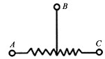 圖所示的是小明同學設計的電烙鐵電熱絲的連線圖,AC間是電烙鐵的電熱絲,B接電熱絲的中點。電烙鐵的額定功率為40W,使用的電源電壓為220V或110V。