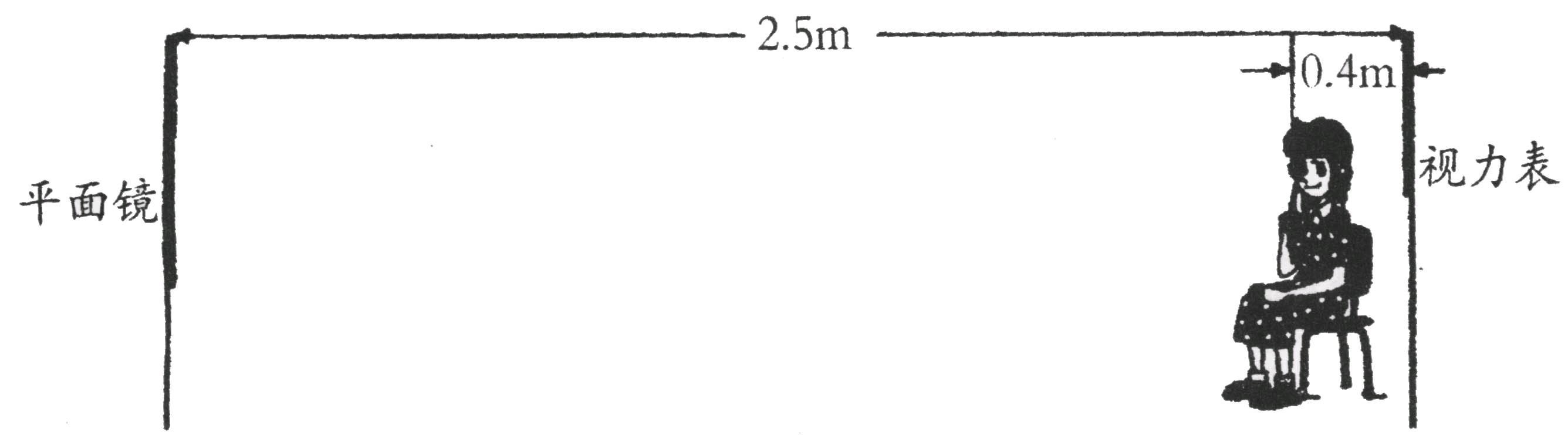 檢查視力的時(shí)候,視力表放在被測(cè)者頭部的后上方,被測(cè)者識(shí)別對(duì)面墻上鏡子里的像,如下圖所示,視力表在鏡中的像與被測(cè)者相距: