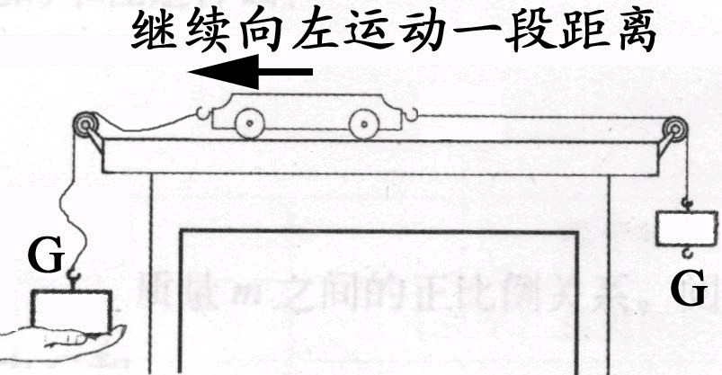 某同學(xué)通過實驗研究物體運動與受力的關(guān)系。在光滑水平桌面上放一小車,其兩端通過細繩懸掛重力相等的兩個鉤碼,物體靜止,如圖(a)所示。在同樣的受力情況下,小車也可向左做勻速直線運動,如圖(b)所示。當(dāng)小車向左做勻速直線運動時,用手豎直向上托住左側(cè)的鉤碼后,發(fā)現(xiàn)小車將繼續(xù)向左運動一段距離,如圖(c)所示。