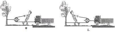 一輛汽車不小心陷進了泥潭中,司機按圖所示的甲、乙兩種方法安裝滑輪,均可將汽車從泥潭中拉出,如果汽車發(fā)動機產(chǎn)生的牽引力比阻力小1000N,則甲圖人勻速拉動汽車的拉力至少為 ,乙圖人勻速拉動汽車的拉力至少為 。(繩與滑輪間的摩擦不計)