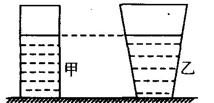 如圖所示,水平桌面上有甲、乙兩個(gè)質(zhì)量和底面積都相等的容器。向容器中注入高度相等的水,水對(duì)容器底部的壓強(qiáng)分別為P甲、P乙,裝水后的容器對(duì)桌面的壓力分別為F甲、F乙。則: