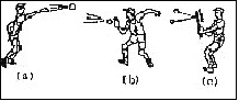 圖中的(a)、(b)、(c)三圖分別表示打棒球的三種情況,觀察圖中的現(xiàn)象可以得出的初步結(jié)論是:_______________________________。