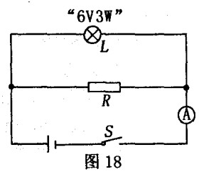 標(biāo)有“6V 3W ”的小燈泡L與額定功率為6W的電阻器R按如圖18電路連接,閉合開關(guān)S時(shí),燈L正常發(fā)光,且電流表示數(shù)為0.75A。求: