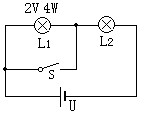 如圖所示電路,已知電源電壓U=6V,燈泡L1上標(biāo)有“2V 4W”字樣。當(dāng)開關(guān)S閉合時,燈泡L2正常發(fā)光;當(dāng)開關(guān)S斷開時,燈泡L1正常發(fā)光。則燈泡L2的額定功率是_________W。