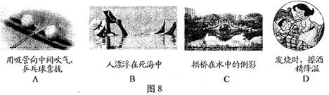 圖所示,是某中學(xué)生為不使母親在做飯時(shí)因刮風(fēng)出現(xiàn)煙倒灌而被嗆所改造的煙囪,刮風(fēng)時(shí),煙囪口的氣流速度變快,壓強(qiáng)變小,煙霧仍能順利排出。該設(shè)計(jì)應(yīng)用到的物理知識(shí)與圖各現(xiàn)象中的原理相同的是:![]()