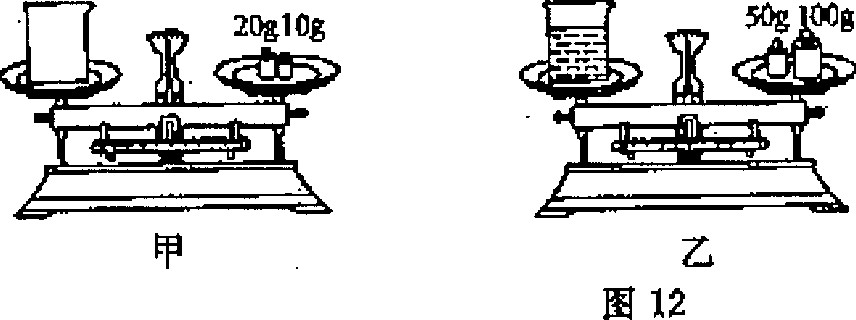 (2)他按圖12中甲、乙、丙的步驟順序進(jìn)行實(shí)驗(yàn),依圖中數(shù)據(jù)可知:牛奶和燒杯的總質(zhì)量為 g,牛奶的密度為 g/cm3。