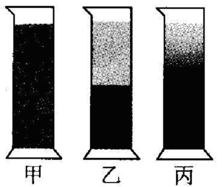 小明為了研究液體的擴散現(xiàn)象,先在量筒里裝一半清水,再在水下面注入硫酸銅溶液。如圖所示,是小明觀察到的溶液在“實驗開始時”、“靜放10日后”、“靜放30日后”所呈現(xiàn)的現(xiàn)象,其中 (選填標(biāo)號)圖是表示溶液靜放30日后的實驗現(xiàn)象。擴散現(xiàn)象說明