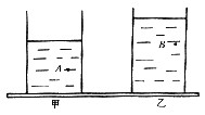 A.甲盛的是煤油,乙盛的是水; B.在深度相同的A、B兩點(diǎn)的壓強(qiáng)相等;