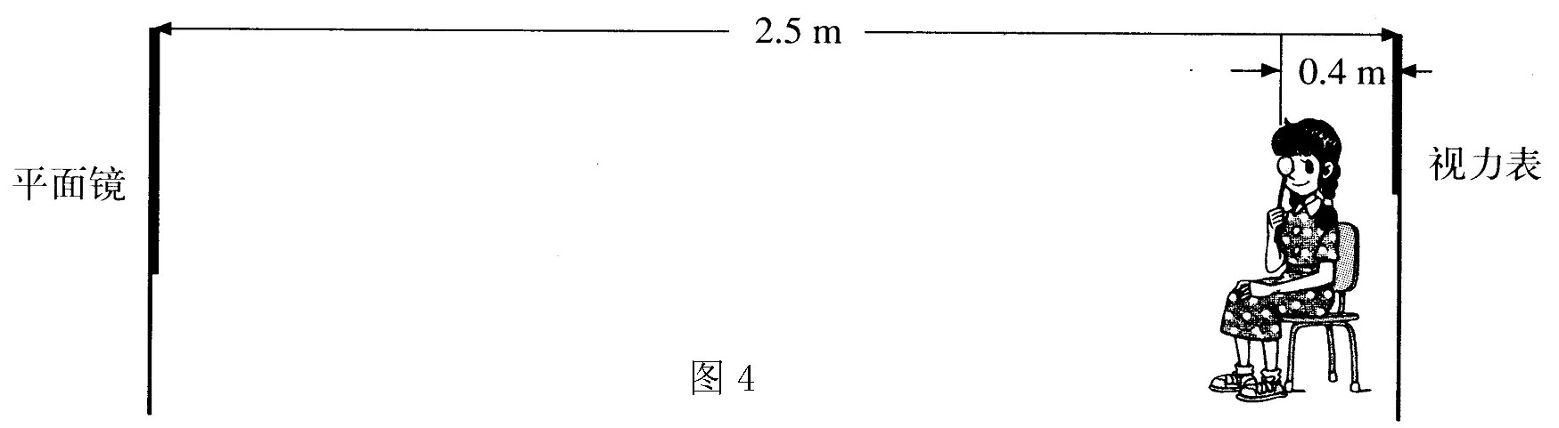 檢查視力的時候,視力表放在被測者頭部的上方,被測者識別對面墻上鏡子里的像,如圖所示。視力表在鏡中的像與被測者相距多遠?