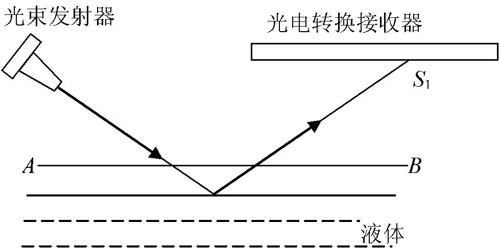 有一種液面微變監(jiān)視器,基本結(jié)構(gòu)原理如圖9所示,光束發(fā)射器始終以一定角度向被監(jiān)視的液面發(fā)射一束細(xì)光;光束經(jīng)液面反射,其反射光被水平放置的平面光電轉(zhuǎn)換接收器接收,再通過(guò)顯示器顯示出來(lái)。開(kāi)始時(shí),光束經(jīng)液面反射,其反射光在S1點(diǎn)被光電轉(zhuǎn)換接收器接收。若被監(jiān)視的液面上升至AB處,請(qǐng)作出其反射光到達(dá)光電轉(zhuǎn)換接收器的光點(diǎn)S2。