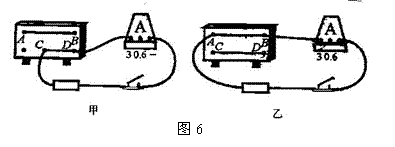 如圖6所示,甲圖中AB和CD是長度不同,粗細(xì)相同的鎳鉻