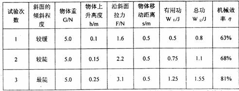 小明學過機械效率后,提出了一個問題:“斜面的傾斜程度與斜面的機械效率有沒有關(guān)系,針對這個問題他也做了在斜面上勻速拉動物塊的探究實驗。并記錄實驗數(shù)據(jù)如下:![]()