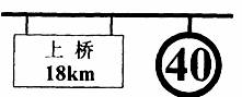 “五一”假期,小明一家駕車外出旅游,一路上,所學的運動知識解決了不少實際問題。經(jīng)過某交通標志牌時,小明注意到了牌上的標志如圖所示,小明想了想.馬上就明白了這兩個數(shù)據(jù)的含義:從交通標志牌到上橋的距離為18km,通過這段公路時,汽車行駛速度不能超過40km/h。若小明爸爸駕車通過這段路程用時30min,則汽車的速度為多少km/h?在遵守交通規(guī)則的前提下,試計算從標志牌到上橋最快要用幾分鐘?