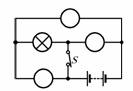 如圖所示電路中有兩個(gè)小燈,請(qǐng)?jiān)趫D中○內(nèi),分別填入