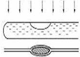 如圖,在注有清水的試管內(nèi)留有一稍大的空氣泡,使太陽光從試管的正上方向下照,觀察試管下方的白紙,可以發(fā)現(xiàn)白紙上與空氣泡相對應(yīng)的位置上,有一橢圓黑影,而其它部分竟是一條與試管平行的亮線。這是因?yàn)樵嚬艹錆M水的地方相當(dāng)于 透鏡,而氣泡與周邊的水組成 透鏡。如果把白紙從靠近試管向下移動(dòng)到較遠(yuǎn)處,亮線的粗細(xì)將如何變化? 。