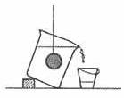 如圖所示,懸吊的實(shí)心金屬球緩慢浸沒于傾斜的盛滿水的大燒杯中,沉到底部,則從大燒杯溢出流入小燒杯中的水和此金屬球的關(guān)系是
