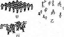 某老師在引導(dǎo)學(xué)生理解固體、液體和氣體的微觀結(jié)構(gòu)時(shí),帶領(lǐng)學(xué)生做游戲,用人群的狀態(tài)類(lèi)比物體的狀態(tài)。如圖所示甲、乙、丙三種情景分別對(duì)應(yīng)的是