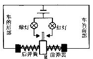 有一儀器中的電路如圖所示,其中帶金屬細(xì)桿的金屬滑塊M與兩側(cè)金屬彈簧相連接并接人電路中,金屬塊M與彈簧套在光滑絕緣水平細(xì)桿上,F(xiàn)將該儀器固定在一輛汽車上,當(dāng)汽車啟動時,綠燈亮;當(dāng)汽車急剎車時,紅燈亮。該儀器的“奧妙”是利用了金屬滑塊的來工作的。