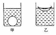 如圖所示,將兩塊相同的橡皮泥做成實(shí)心球形和碗形,分別放入相同的甲、乙兩杯水中。靜止時(shí)甲杯中橡皮泥所受的浮力_______乙杯中橡皮泥所受的浮力(填“大于”、 “小于”或“等于”),_________杯中水面升高得多。