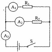 如圖所示電路中,當(dāng)開關(guān)閉合后,電流表A1、A2的示數(shù)比I1:I2=5;3,則電阻比R1:R2=______,電流表A1、A3的示數(shù)比I1:I3=______。