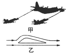 飛機機翼的橫截面設(shè)計成如圖乙所示的形狀,是利用了在氣體中流速越大的位置壓強越 的原理,從而使機翼的上下表面產(chǎn)生壓強差,為飛機提供升力。