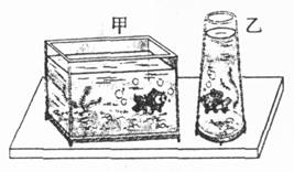 如圖所示,桌面上放有甲、乙兩個(gè)魚缸,同學(xué)們觀察、比較后提出下列說法,其中正確的是