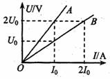 有兩只定值電阻RA和RB,各自的電流與電壓關(guān)系如U-I圖象中的A、B。則