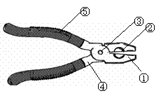 生活中一些看似平常的工具卻蘊(yùn)含著豐富的物理知識(shí),如圖所示的夾鉗就是其中一例,圖中①齒狀鉗口;②刀口;③轉(zhuǎn)軸;④手柄;⑤帶齒紋的橡膠柄套。請(qǐng)簡要說出其中兩處各應(yīng)用了什么物理知識(shí)。
