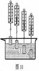 為了驗(yàn)證上述猜想,小明做了如圖10 所示的實(shí)驗(yàn);他在彈簧測力計(jì)下端掛一個(gè)鐵塊,依次把它緩緩地浸入水中不同位置,在這一實(shí)驗(yàn)中: