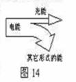 (2)白熾燈工作時(shí)的能量轉(zhuǎn)化情況如圖14,試推測節(jié)能燈工作時(shí)的能量轉(zhuǎn)化情況,仿照?qǐng)D14畫出節(jié)能燈工作時(shí)的能量轉(zhuǎn)化圖。