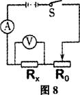 熱敏電阻與溫度有關(guān)。圖8是探究熱敏電阻Rx大小與溫度變化關(guān)系的電路圖,得到數(shù)據(jù)如下表所示: