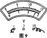 (2)第二次實(shí)驗(yàn)的電壓表指針位置如圖9所示。請(qǐng)將電壓表的讀數(shù)及對(duì)應(yīng)的電阻值填入上面的表格中。
