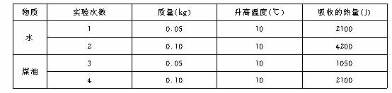 某同學(xué)在做研究影響物質(zhì)吸熱多少的因素的實(shí)驗(yàn)時,得到如下的數(shù)據(jù)表: