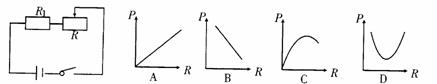 5.如圖所示,R1為定值電阻,滑動變阻器R的最大阻值大于R1,則當變阻器的滑片從左到右滑動的過程中,變阻器中消耗的電功率P隨變阻器R變化關(guān)系的圖像近似于下下圖象中的( )