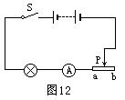 在圖12所示的電路中,閉合電鍵S,當(dāng)滑片P向b端移動(dòng)時(shí)( )