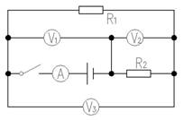 如圖所示,R1的阻值為10Ω,R2的阻值為15Ω,電源電壓為10V,當開關閉合后,電壓表V1的示數(shù)為______V,電壓表V2的示數(shù)為_______V,電壓表V3的示數(shù)為_______V,電流表A的示數(shù)為_______A.