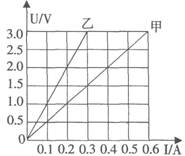 兩定值電阻甲、乙中的電流與電壓關(guān)系如圖所示。現(xiàn)在將甲和乙串聯(lián)后接在電壓為3V的電源兩端,下列分析正確的是
