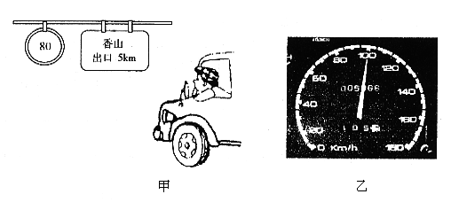 小李開車時(shí)看到如圖甲所示的交通標(biāo)志牌,此時(shí)汽車內(nèi)的速度計(jì)如圖乙所示。