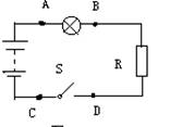在如圖所示的電路中,A、B、C、D為四個(gè)接線柱,閉合開(kāi)關(guān)后燈不亮,已經(jīng)確定是由于燈泡開(kāi)路或短路引起的。在不允許拆開(kāi)電路的情況下,請(qǐng)你先后用一個(gè)電壓表、一個(gè)電流表、一根導(dǎo)線三種不同工具分別對(duì)故障進(jìn)行判斷,把方法和判斷結(jié)果填入下表中(每種工具各填寫(xiě)一種方法)。